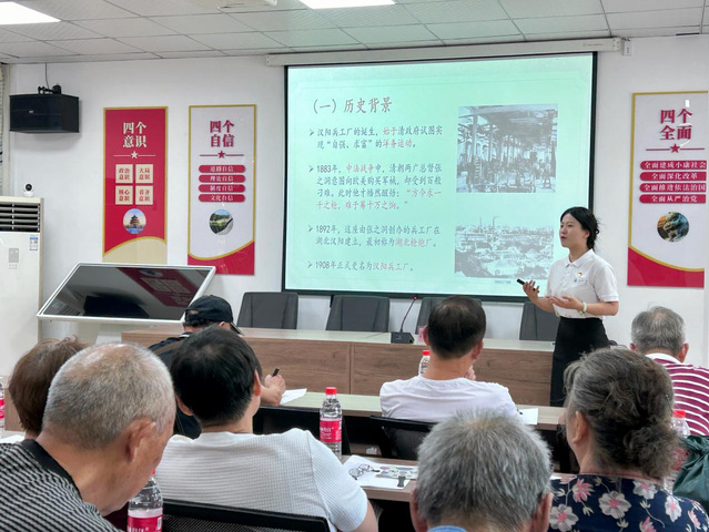 王文文同学对“汉阳造——近代中国救亡图存的利器”进行了详尽的阐述。她精心梳理了“汉阳造”的深厚历史背景及其独特的发展轨迹,并结合汉阳造文化创意产业园的鲜活实例,生动地展示了“汉阳造”在新时代焕发出的创新活力与广阔的发展前景。接下来,李雯英同学深入剖析了“百年叶开泰,半部中医药史”的辉煌历程,探讨了叶开泰药店在新时代背景下的“创造性转化与创新性发展”,凸显了其在中医药领域的时代价值及巨大的发展潜力。最后,实践队的成员们带领居民朋友们一起学习习近平总书记关于中华优秀传统文化的重要论述,明晰传承和发扬优秀传统文化的必要性。