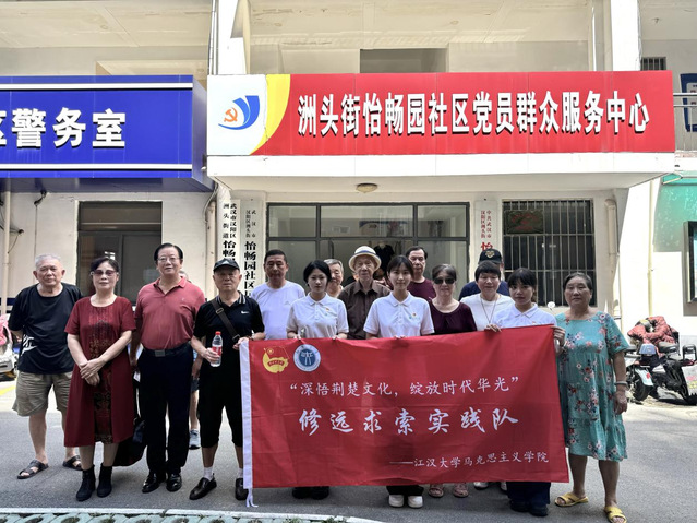2024年7月24日,修远求索实践队的成员们走进洲头街道畅园社区开展题为“弘扬荆楚文化,传承爱国精神”的宣讲活动。