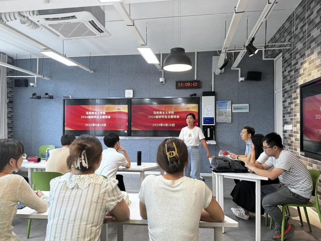 8月30日上午,2022级学科教学(思政)专业肖敏捷、霍铄坤,2023级马克思主义理论专业王文文,2023级学科教学(思政)专业卢艳、李雯英、黄娟、李子仪作为老生代表与2024级全体研究生共同交流。七位学长学姐们从自身经历出发,从学生工作、研究生会、暑期社会实践、科研竞赛、生涯规划等多方面帮助新生们了解如何快速适应身份角色转变,规划适合自己的发展方向,并祝愿新生们以求真务实的态度,开启人生新的篇章。新老生代表交流结束后,研究生们在J05B401进行了心理测评。