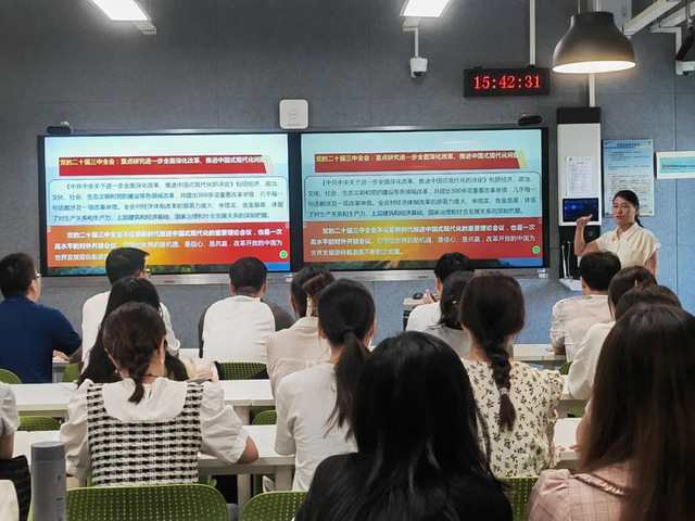 8月30日下午,吃瓜 党委书记吕洪雁在J05B401给2024级全体硕士研究生开展党的二十届三中全会精神宣讲,深入领会掌握三中全会《决定》的内涵,讲解进一步全面深化改革、推进中国式现代化的重大意义和总体要求。她希望同学们在进一步全面深化改革的新时代新征程上努力奋斗,厚植家国情怀,争做强国建设和民族复兴的追梦人,希望大家新的学期快速收心,做到眼中有光、心中有爱、脚下有路,树立职业自豪感,祝愿同学们在江大成为更好的自己。