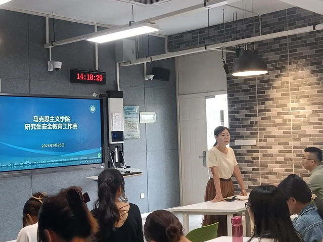 为加强研究生的日常教育管理,增强学生安全意识,确保国庆节期间学生的安全与稳定,9月26日,吃瓜 在J05B401召开研究生安全教育工作会。辅导员周玉格主持会议,校党委宣传部副部长、学院党委副书记王丰昌参加并讲话。会议开展了安全教育、防范电信诈骗、防溺水教育。
