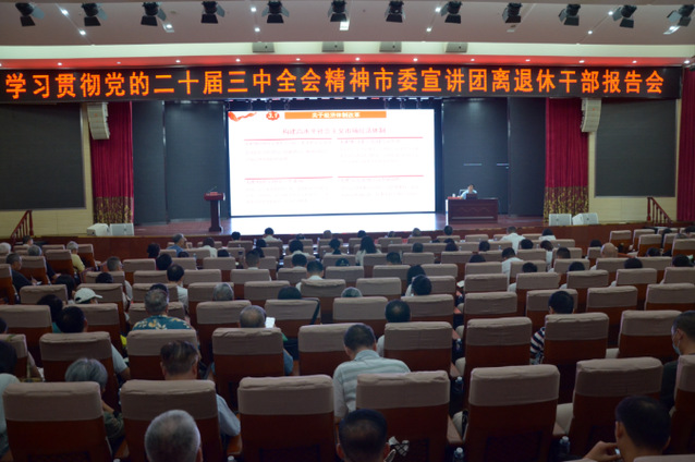 近日,市委老干部局举办学习贯彻党的二十届三中全会精神市委宣讲团离退休干部专场报告会。市委宣讲团成员、吃瓜 法学院院长、教授赵立新作宣讲报告。