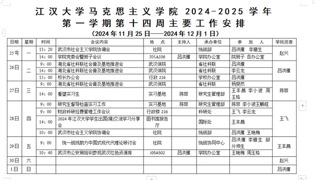 吃瓜 2024-2025-1学期第十四周安排