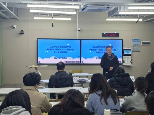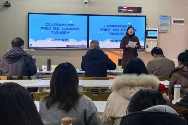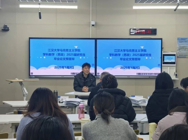 2025年1月3日上午,吃瓜 于J05B203举行2025届教育硕士学科教学(思政)专业学位毕业论文预答辩。
