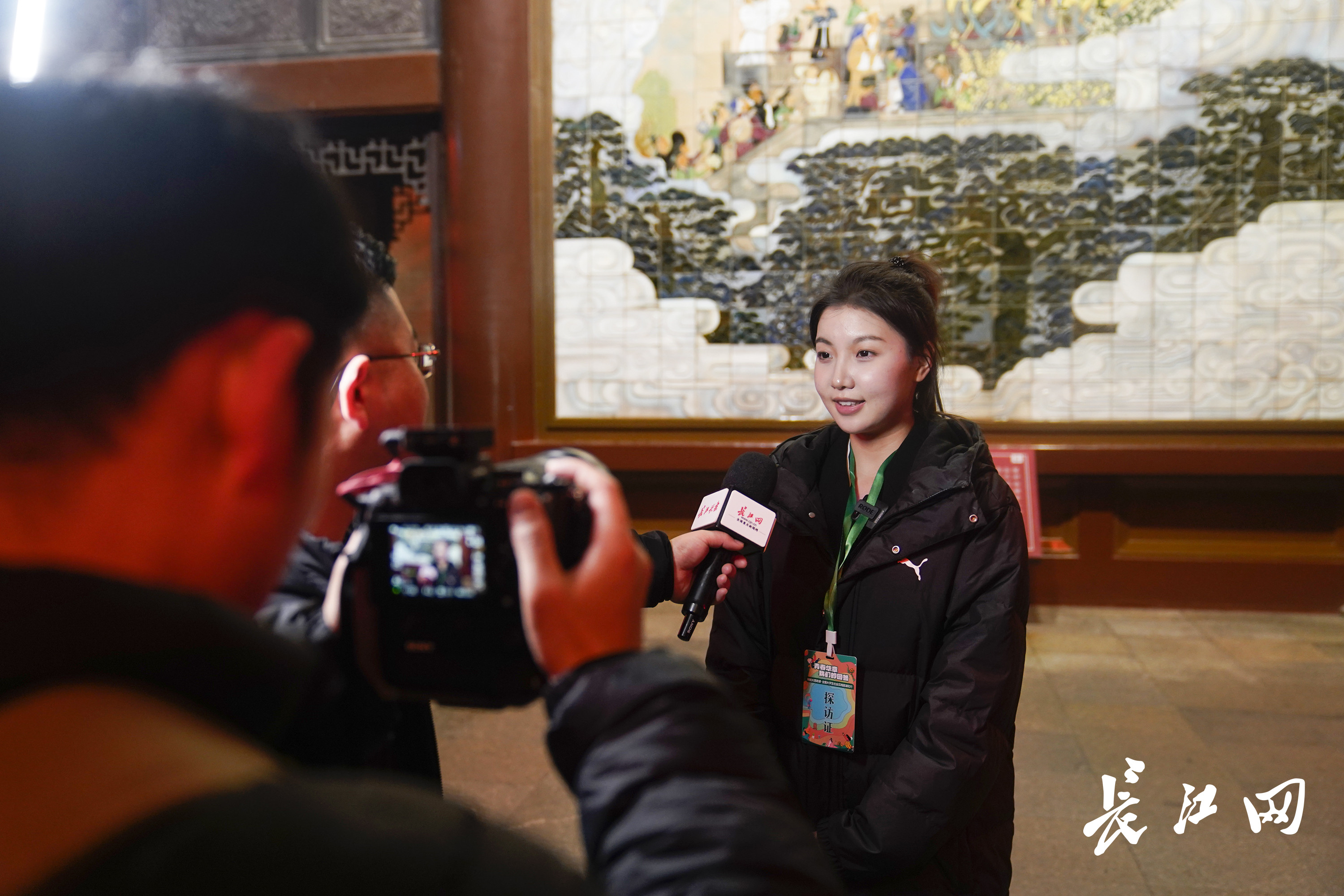 湖北大学新闻传播学院2023级播音与主持艺术专业本科生张赛一在黄鹤楼接受长江网采访。刘雍涛 摄