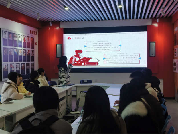 活动中,24级学科思政研究生吴可通过讲述雷锋的成长经历、分享雷锋日记中的感人故事,让同学们真切感受到了雷锋一心向着党、向着社会主义的坚定信念,以及他全心全意为人民服务、无私奉献的高尚品质。在互动环节,同学们积极发言,分享自己身边的雷锋故事,以及在日常生活中践行雷锋精神的点滴感悟。