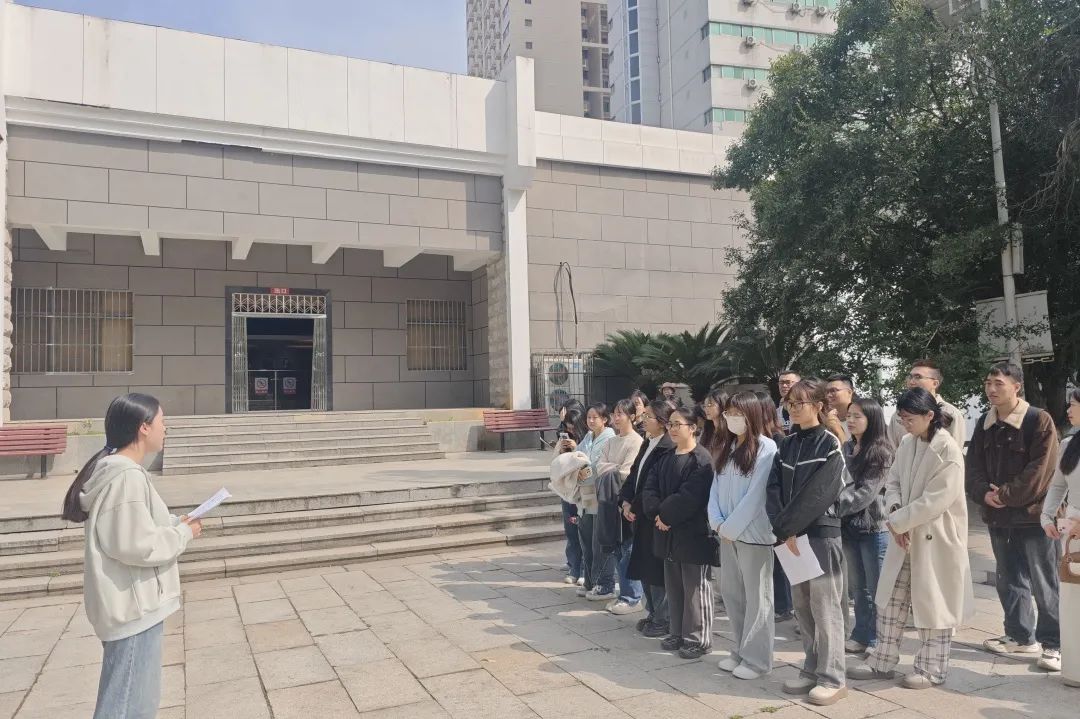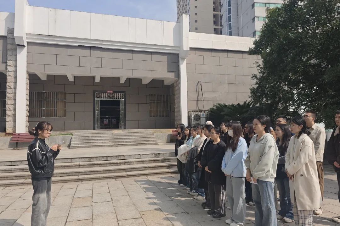 在纪念馆外,2024级学科思政唐沙和2024级学科思政罗珊两位同学依次为大家分享了陵园的历史沿革及陵园的教育意义。师生们纷纷表示,此次清明祭英烈活动是一次深刻的思想洗礼和生动的爱国主义教育,施洋烈士用生命诠释了对信仰的坚守和对人民的忠诚。