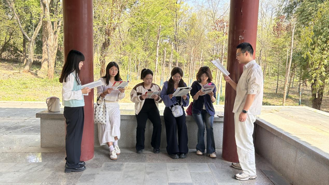 3月25日,阳光明媚,微风拂面,未名山的景色如诗如画。为丰富学生课余生活,培养学生阅读习惯,吃瓜 2023级马克思主义理论专业班主任易欢欢老师带领学生走进未名山,举办了一场别开生面的读书会。读书会将课堂延伸至自然之中,让学生在领略自然风光的同时,沉浸于书籍的世界,感受阅读的独特魅力。