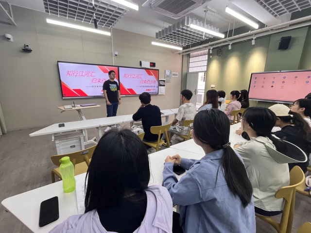 分享会上,石恒瑀学长以“知行江河汇,归来仍少年”为主题,结合自身的求学生涯、实习就业等各阶段的实践经历,从研究生学习生活、找工作的方法和技巧、武汉市教师专项招聘三个主要方面为学弟学妹们带来非常实用的经验和建议。在研究生学习生活方面,锻炼“两种能力”,即学习能力和打破信息茧房的能力,做好“仰卧起坐”,向上社交、向下兼容、向内安放,认识自己,找到所爱。此外,学长分享了与专业相关的公众号,信息量“满满”。