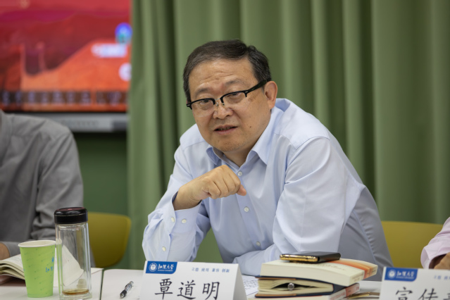 4月16日下午,“习近平新时代中国特色社会主义思想概论”课集体备课会在J05教学楼B302室举行。校党委书记覃道明出席并讲话,强调要深入学习贯彻习近平总书记关于学校思政课建设重要指示精神,坚持思政课建设与党的创新理论武装同步推进,学深悟透,直面时代,上好习近平新时代中国特色社会主义思想概论课。