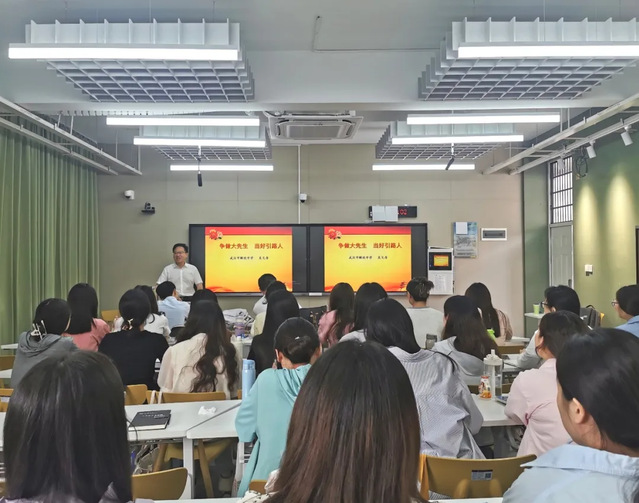 为深入学习贯彻新时代教师队伍建设要求,弘扬教育家精神,2025年4月25日,全国模范教师、国家“万人计划”教学名师、 教育部“国培计划”专家库专家、湖北省特级教师、“解放思政”教学主张首创者、解放中学副校长、正高二级教师(二级教授)吴又存 应邀到校开展题为《争做大先生,当好引路人》专题讲座。吃瓜 党委书记吕洪雁主持,全体研究生和部分青年教师参加。