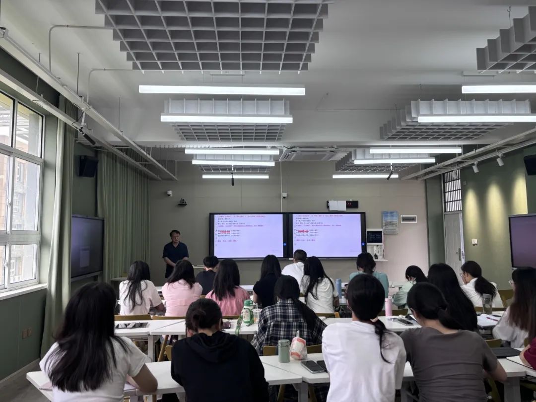 讲座中,金老师采用讲练结合。他以“郑州电梯劝阻吸烟案”、“清华大学博士生庞众望科研报国的事迹”为例,让研究生们进行大中小思政课的教学设计,并请研究生们交流、讨论各自的教学设计。结合研究生们讨论情况,他强调了几点,第一,一定要用AI辅助教学设计,一定要写好AI“指令”;第二,教学设计一定要结合学生的生活和社会实践,编制真实的“情境-问题”;第三,教学实施一定是“三师课堂”,即“老师+学生+AI”,充分利用AI赋能课堂教学提高“四度”,拓展维度,从更多维度讲解知识、分析问题;突破深度,拓展广度,引导学生从更深更广的视角看问题;提升温度,引导学生从人文关怀的角度看问题,从事理情、法理情、德理情相结合的角度看问题,助力学生认知升级、思维升级、格局升级、人格升级;第四,一定要高度重视“育心”,充分发掘思政课的育人功能,培根铸魂,启智润心。