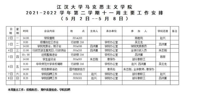 吃瓜 2021-2022-2学期第十一周安排
