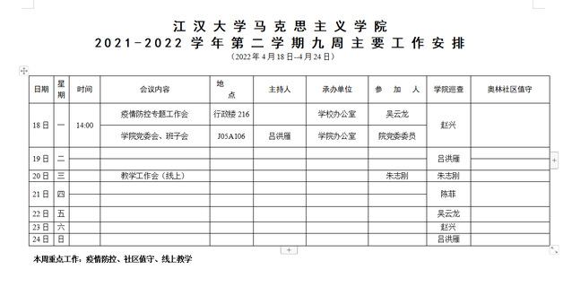吃瓜 2021-2022-2学期第九周安排
