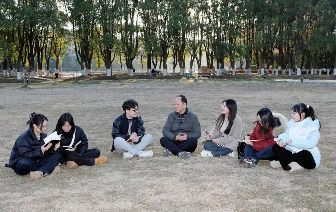 三角湖畔的草地,是李腊生教授精心守护的“思想牧场”。这里,一盏名为“湖畔有约”的长明灯,已温暖了数个春秋。每学期3~4次,他与各年级学子围坐,或探讨学术前沿,或聚焦社会热点,或分享人生感悟。这种轻松开放的交流机制,吸引了其他导师和研究生自发加入,形成跨年级、跨导师的学术共同体。