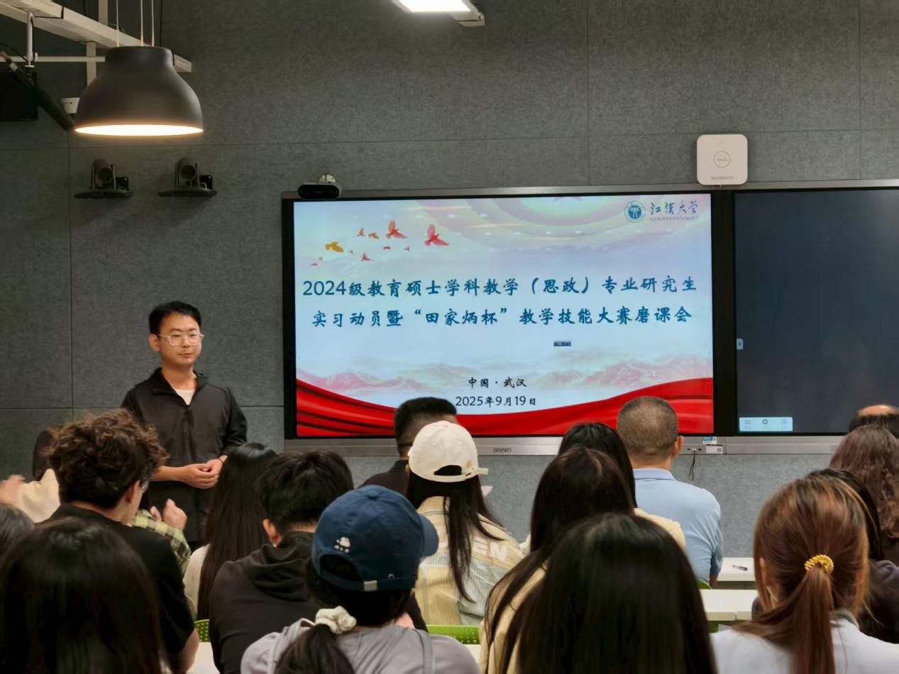 为提升吃瓜 学科教学(思政)专业硕士生的教学实践能力与学科素养,统筹推进实习与教学技能大赛备赛,学院组织实习动员与磨课相结合专项活动,以赛促学、以践赋能,2025年9月19日下午,吃瓜 2024级教育硕士学科教学(思政)专业研究生实习动员大会暨“田家炳杯”教学技能大赛磨课会在J05B401召开。大会由学院研究生教学与管理部王鹏程老师主持。院领导、导师代表、教学办,辅导员、班主任代表及2024、2025级全体研究生参会。