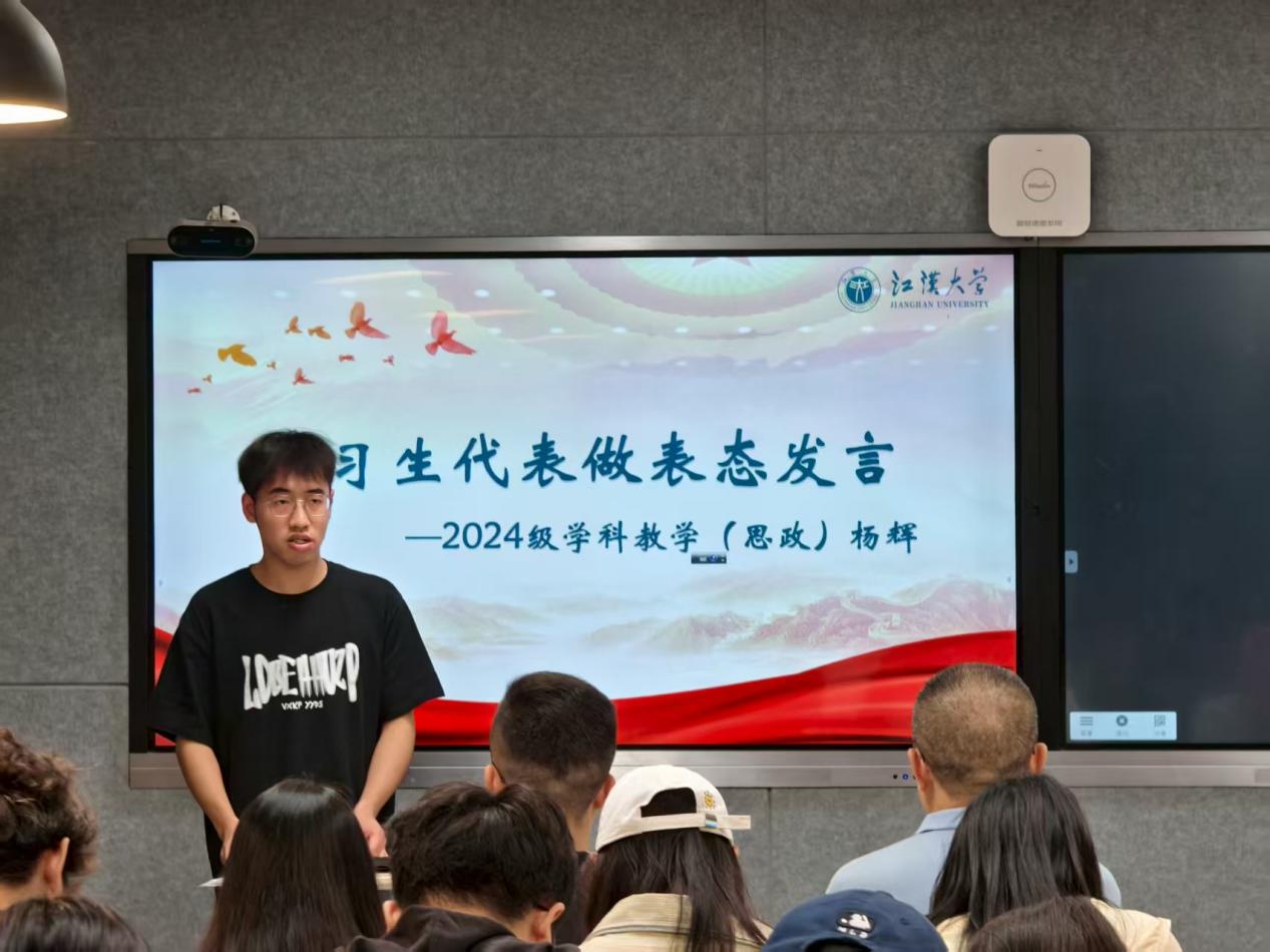 2024级实习生代表杨辉在讲话中表达了对即将到来的实习生活的向往,也展现出对未来教学实践的满心期待。
