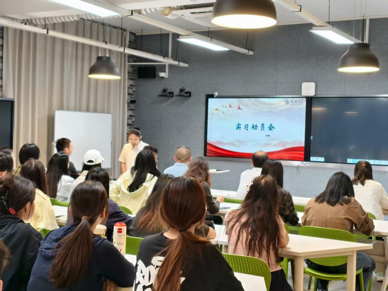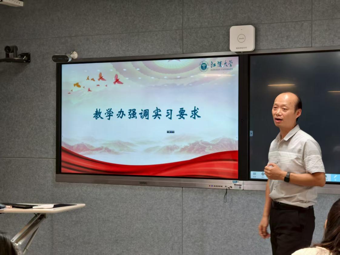 院教学办负责人刘硕向同学们强调了实习纪律,要求大家在实习实践过程中注意安全,保持与导师、辅导员、班主任及家长的联系,确保实习安全有序进行,并就实习材料要求进行说明。