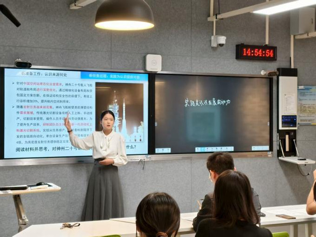 院研究生教学与管理部王荣老师介绍了实习分组安排,宣读实习纪律要求。她提醒同学们严格遵守校纪校规、服从实习安排与教学要求、强化保密与信息安全、恪守职业规范与行为准则,落实安全健康管理责任。她希望同学们在实践中锤炼本领、增长才干,为成为优秀的人民教师奠定坚实基础。