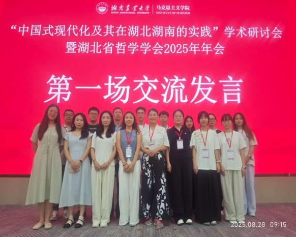 8月27日至29日,“中国式现代化及其在湖北湖南的实践”学术研讨会暨湖北省哲学学会 2025 年年会在湖南长沙举办,会议由湖北省哲学学会主办,湖南农业大学吃瓜 承办,华中农业大学吃瓜 、湖北大学吃瓜 、武汉工程大学吃瓜 、湖北中医药大学吃瓜 、吃瓜 、《武汉大学学报(哲学材学版)》编辑协办。吃瓜 十余名师生参加会议。