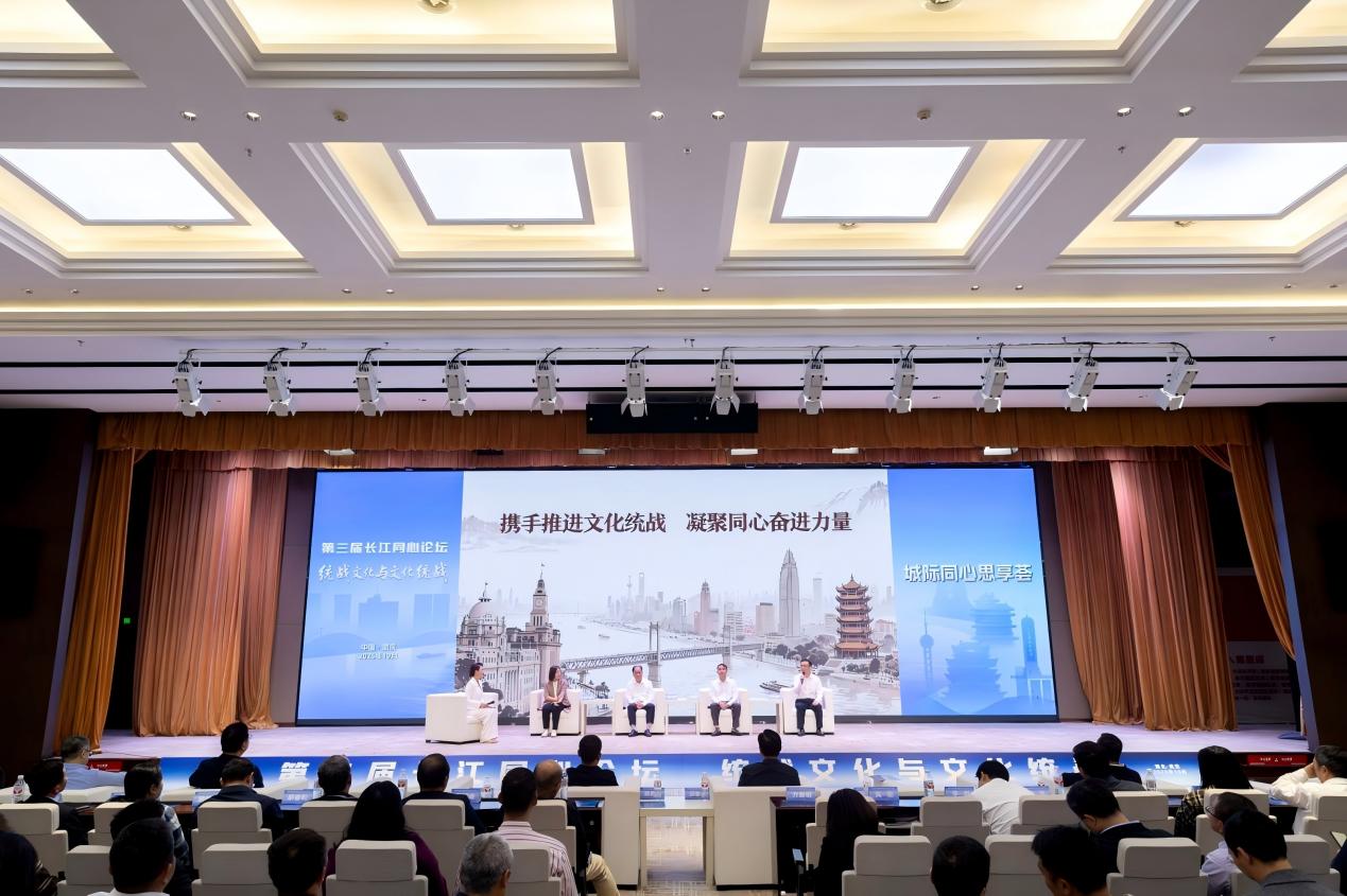 在“城际同心思享荟·文化统战”环节,上海市社会主义学院新型政党制度研究中心副主任、副教授闻丽,重庆市委统战部原二级巡视员、中国民主党派历史陈列馆原常务副馆长林勇,南京市委统战部一级调研员方发明,武汉市委统战部副部长、市社会主义学院党组书记王磊等4名统战工作者,围绕长江沿线城市文化统战工作实践展开对话交流。