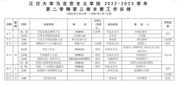 吃瓜 2022-2023-2学期第三周安排