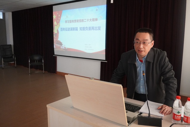 2023年3月9日下午,外国语学院举办党的二十大精神宣讲会。宣讲会由吃瓜 党史学习教育宣讲团成员、吃瓜 闵杰副教授宣讲,学院全体教职工参加,学院党委副书记赵友法主持。