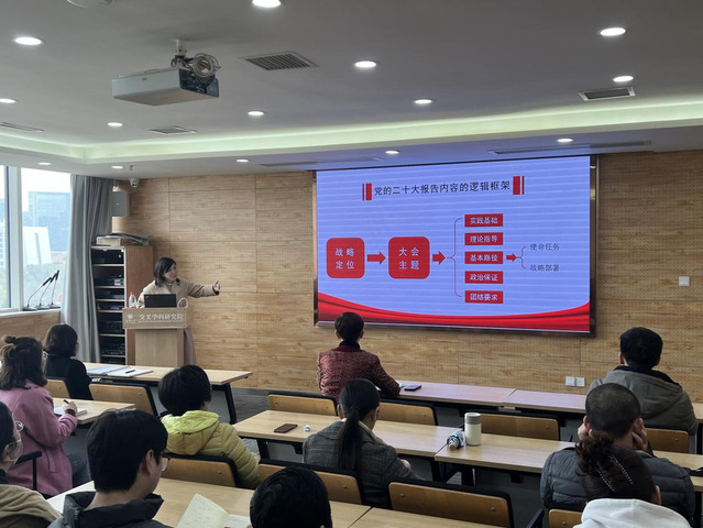宣讲会后,学院党委副书记杜鹃要求全院教职工要以此次宣讲学习为契机,积极投入到党的二十大精神学习中来。特别是通过陈菲教授在辅导报告中对二十大精神的深刻梳理和阐述,把精神学深悟透。全院教职工要把学习二十大精神作为学院近期及今后一段时间首要政治任务,做到精神学习宣传全覆盖;要统一思想、提高认识,以实际行动把党的二十大在具体工作中细化、实化、具体化,进一步全面提振干事创业精气神,汇聚学院对标“双一流”发展的强大正能量。