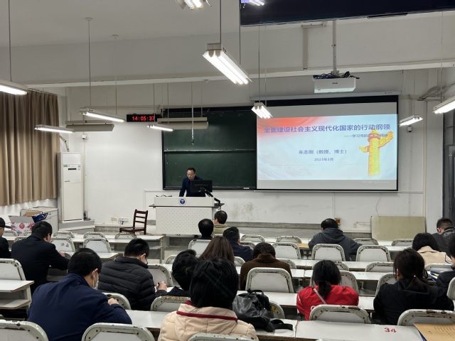 朱志刚教授以“全面建设社会主义现代化国家的行动纲领——学习党的二十大精神”为题,围绕大会简介,报告要点解读,奋斗新时代(报告第一部分),贯彻新思想(报告第二部分),擘画新蓝图(报告第三部分),启航新征程(报告第四-十五部分)六个方面为大家展开讲解。宣讲内容紧扣主题,语言通俗易懂,既有理论高度,又有思想深度,对与会人员深刻理解和准确把握党的二十大精神具有极强的针对性、指导性。