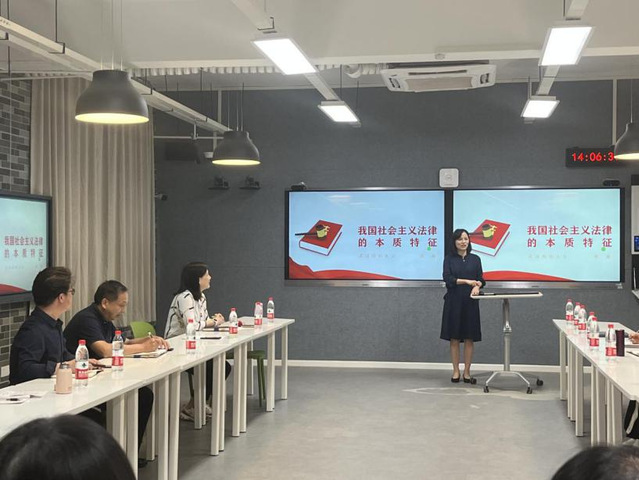 在示范授课环节,常沛教授以“我国社会主义法律的本质特征”为题,通过巧妙的问题设计和案例串联,层层递进展开课程教学的内在逻辑,逻辑严密、说理透彻,呈现了一堂生动形象、富有活力的思政课。