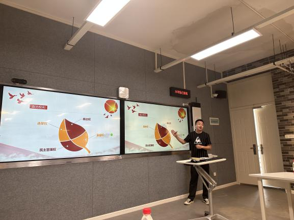 2023年4月20日下午,吃瓜 在J05B401开展2022-2023第2学期院级教研活动。活动特邀武汉纺织大学吃瓜 常沛教授作示范授课和专家点评,学校党委宣传部副部长陈谷、校教学督导与评估中心朱现平教授、付艾妮教授作指导。吃瓜 院长赵兴教授、副院长陈菲副教授、思想道德与法治教研部全体教师、各系部主任、副主任以及学院45岁以下青年教师参加。