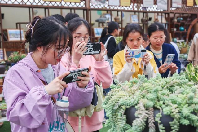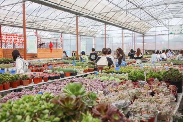 伴着微风,师生们走进了武汉自勇园艺专业合作社。武汉楷模获得者、合作社社长、“多肉女王”彭先进生动地讲述了她的创业故事。2010年,为支持国家南水北调项目,彭先进从十堰市丹江口市举家搬迁到武汉市东西湖区柏泉街道二大队彭家庄。作为一名单亲妈妈,她带着孩子开始创业,拿出开小吃店攒下的3万元建起多肉植物种植大棚,在种植中积累经验。经过多年打拼,她打造出武汉市最大、湖北省品种最多的多肉植物园艺基地,带动了当地移民就业。同学们在火龙果种植大棚、多肉种植基地开展体验劳动,深刻地感受到推进中国式现代化建设的强大动力,就来自于人民群众对美好生活的向往。