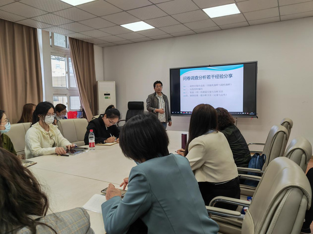 在讲座中,华平老师从调查对象的选取、问卷资料编码、变量(项)的测量尺度与分析方法、调查结果一般分析方法四个方面做了精彩的授课,同时现场分享并演示了利用spss数据分析问卷调查表的操作过程。华平老师的讲座主题鲜明、全面系统、内容丰富,具有很强的理论性、实践性和针对性,为师生更好地掌握调研本领提供了坚强有力的指导。