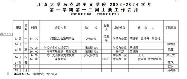 吃瓜 2023-2024-1学期第十二周安排