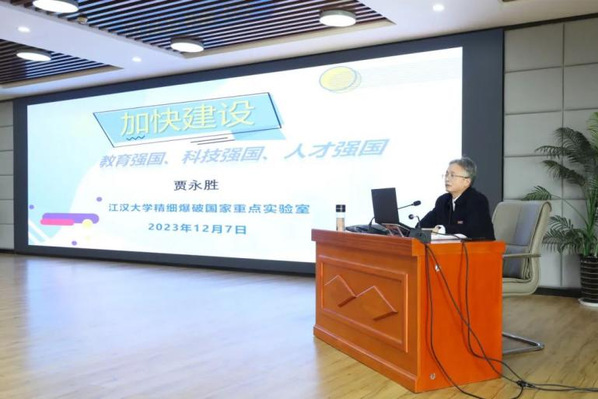 12月7日,副校长、精细爆破国家重点实验室主任、武汉爆破有限公司董事长贾永胜给爆破学院学生作形势与政策专题讲座。贾永胜副校长以“加快建设教育强国、科技强国、人才强国”为题,为与会师生作形势与政策专题讲座。他以“国产大飞机C919商业首飞”和“武汉江天大厦爆破拆除工程”为例引入主题:教育、科技、人才,围绕“着眼长远发展的重大抉择”“铸就强国建设的坚实基础”“加快强国建设的战略部署”“充分发挥高校的重要作用”四个方面内容,深入浅出地阐释了教育优先发展、科技自立自强、人才引领驱动对于全面建设社会主义现代化国家的作用和深远影响,引领学生深刻领悟在中国共产党的坚强领导下,全体人民共同沿着建设教育强国、科技强国、人才强国方向前进取得的一系列历史性成就。