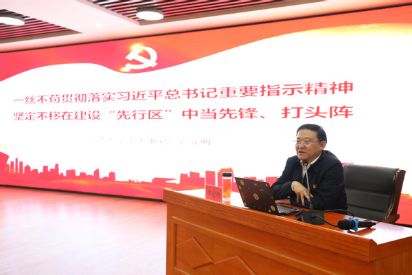 覃道明结合亲身经历,详细回顾了习近平总书记五次考察湖北的点点滴滴,引导学员们深入感受习近平总书记对湖北省、武汉市的深切关怀和殷切期望。他指出,党的十八大以来,习近平总书记先后五次考察湖北,还在全国两会期间出席湖北代表团审议,充分体现习近平总书记和党中央对湖北、对武汉看得重、很看好、看得远。他还结合当前国内外政治经济形势,深入剖析了湖北省加快建设全国构建新发展格局先行区面临的“两个大局”,帮助同学们精准把握省第十二次党代会的精神实质,明晰自身的责任与使命担当,勉励青年学子们一丝不苟贯彻落实习近平总书记重要指示精神,坚定不移在建设“先行区”中当先锋、打头阵。
