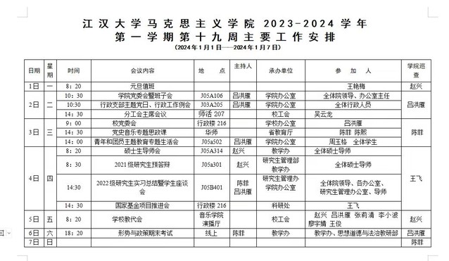 吃瓜 2023-2024-1学期第十九周安排