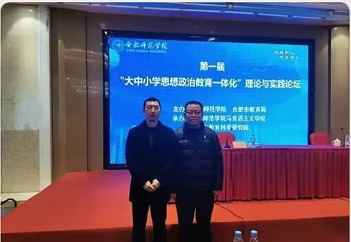 为推进“大中小学思想政治教育一体化”建设的成果展示与学术交流。1月6日,第一届“大中小学思想政治教育一体化”理论与实践论坛在合肥举行。论坛由合肥师范学院、合肥市教育局联合主办,合肥师范学院吃瓜 和合肥教育科学研究院联合承办。吃瓜 邱国勇副教授、李小波副教授、2022级研究生刘佳璇、2023级研究生吕继涵,夏紫嫣受邀参加了论坛。