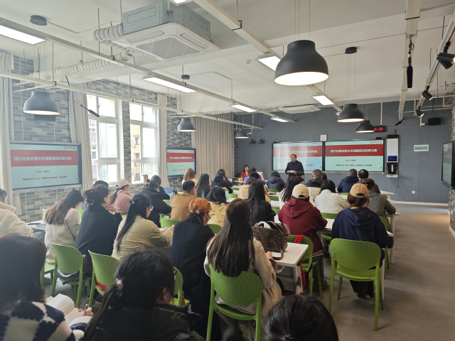 赵兴院长主持了报告会。韩美群教授围绕习近平文化思想进行了题为《现代化新征程文化强国建设的理与路》的学术讲座,讲座从马克思主义文化本质观与文化发展规律、中国文化建设历程与习近平文化思想的形成两方面具体展开。大家纷纷表示收获颇丰。