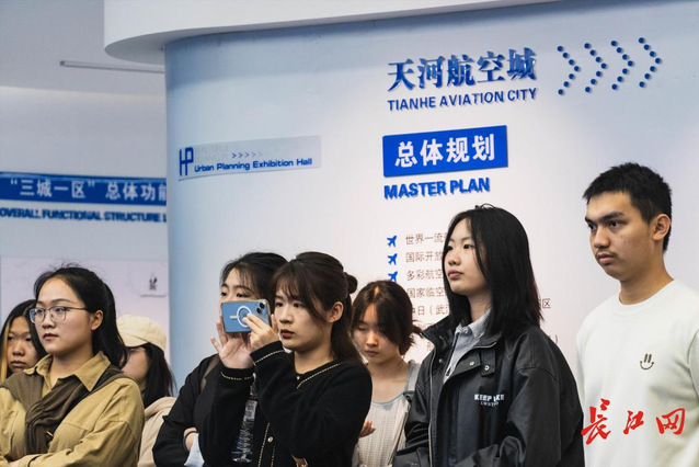 来自武汉理工大学和吃瓜 的师生在空港新城展示馆参观。韩昶光摄