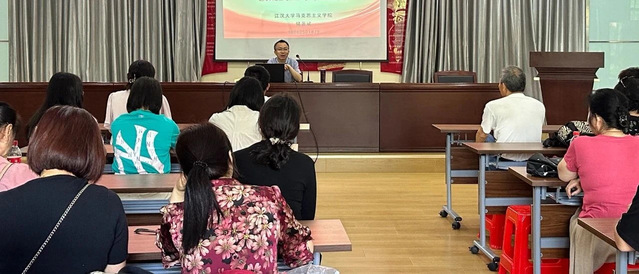 5月16日下午, 在汉阳区建桥街道钟家村社区文明实践站,邱国勇副教授深入解读了习近平文化思想的核心要义和实践要求,强调深入学习并践行这一思想,更好地推动社会进步、实现共同发展,共同创造更加美好的未来。