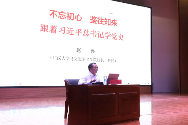 开班仪式结束后,吃瓜 院长赵兴教授以《不忘初心 鉴往知来——跟着习近平总书记学党史》为题,为学员们作了首场讲座。赵兴从习近平总书记的党史情怀、习近平总书记的党史足迹、听习近平总书记讲党史故事以及“以史为鉴,开创未来”“请党放心,强国有我”等5个方面阐述了习近平总书记关于党的历史的重要论述及党史学习教育的重大意义,为学员们上了一堂生动的党史学习教育课。
