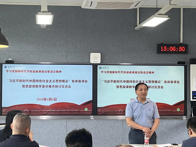 为深入学习贯彻习近平总书记关于学校思政课建设重要指示精神、落实新时代学校思政课建设推进会精神,6月6日下午,吃瓜 在J05B401开展“习近平新时代中国特色社会主义思想概论”集体备课会暨思政课教学重点难点研讨交流会。活动特邀湖北工业大学吃瓜 副院长华倩教授作指导。吃瓜 领导班子、中国特色社会主义理论教研部全体教师和45岁以下青年教师参加。