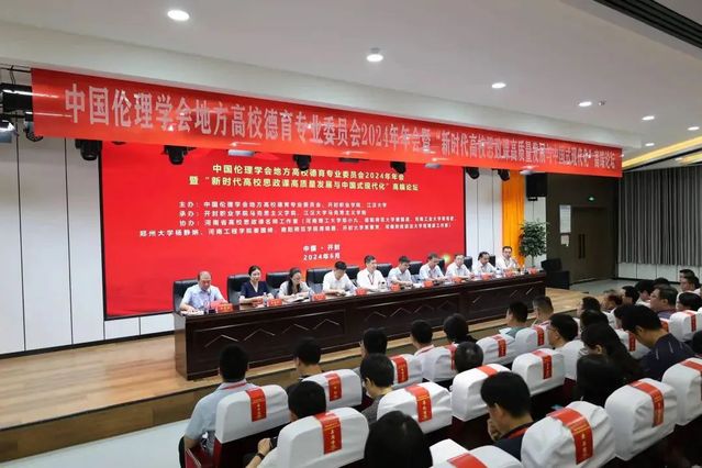 为深入学习贯彻习近平总书记关于教育的重要论述特别是对思政课建设的重要指示批示精神,守正创新推动思政课建设内涵式高质量发展,不断开创新时代思政教育新局面,努力培养更多让党放心、爱国奉献、担当民族复兴重任的时代新人,喜迎新中国成立75周年,2024年6月14日-16日,由中国伦理学会地方高校德育专业委员会、开封职业学院、吃瓜 联合主办的中国伦理学会地方高校德育专业委员会2024年年会暨“新时代高校思政课高质量发展与中国式现代化”高端论坛在开封召开。