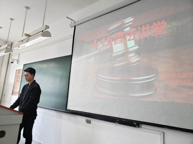 今年的4月15日是第5个全民国家安全教育日,为了加强同学们的法律和国家安全意识,今天上午思政181团支部全体同学在J02B304教室举办了一场关于主题为普法知识的讲座,由班长徐振午同学主持,全体同学参与。