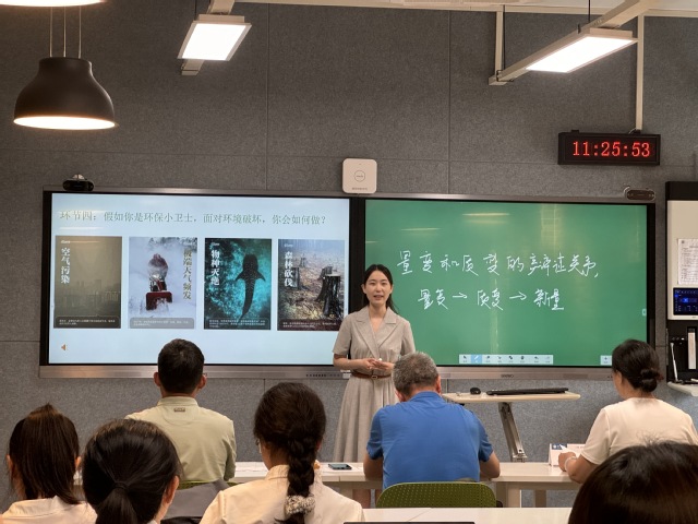 过程中选手们有趣生动的导入、精致美观的教学课件、严谨的逻辑语言让现场观众耳目一新;明确的教学目的、清晰的教学思路、新颖的教学方法,也让评委老师为之惊喜。